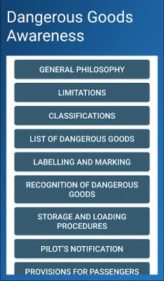 This dangerous goods awareness training app is for persons working in the aviation industry especially in the air cargo field, covering subjects like hazard classifications,handling and packaging