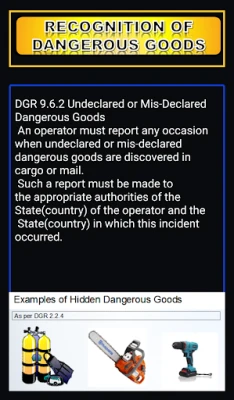 Note: Always ensure that you verify with the latest IATA DGR Manual for the regulations on air transport. This app is only to be used as a learning aid.