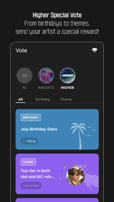 HIGHER is a global fandom social platform where global K-POP fans can participate in popularity votes, share and watch artist videos with friends, and even directly participate in the growth and content production of their favorite artists. This platform aims to create a new fan culture and provide diverse and new features and services to experience everything about K-POP.