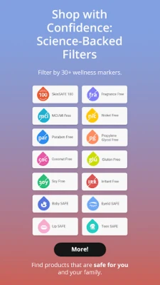 • Personalized Alerts: Receive SAFE for Me™ alerts tailored to your skin profile. Stay informed about product safety and avoid allergens, irritants, or ingredients you want to avoid.