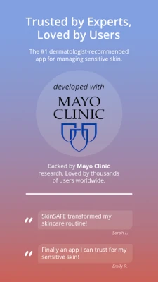 • Trusted by Dermatologists: Backed by Mayo Clinic, SkinSAFE is the #1 dermatologist-recommended app for managing sensitive skin & other skin concerns.